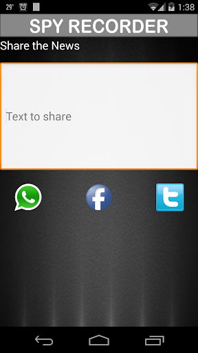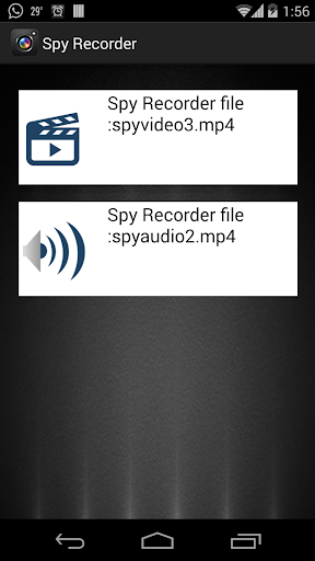 This the no 1 spy app available in the market .This app brings you another experience of recording hidden videos and and hidden audio without actually user knowing it.There are many app available for secret recording , but this one is different as the screen does not show the video/audio recording is going on .When you hit start button for the recording app takes you to home screen while recording is going on .You can come back to the app by clicking app icon or from notification where it says Recording still on .You have a media section where you get all the videos and audios you have recorded at one place .The best part is your videos are hidden from the gallery and stored it your own lib .