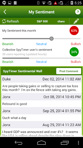 8) Collaborate with other SpyTimer users, Post and see collective Sentiment each month.