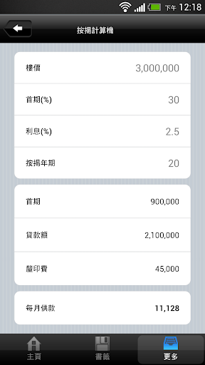 - 內置 「按揭計算機 」–計算按揭貸款、利息、供款及稅務開支