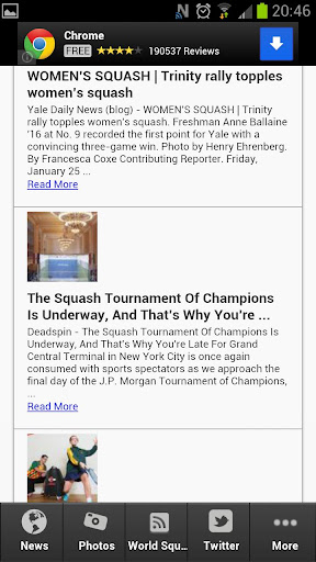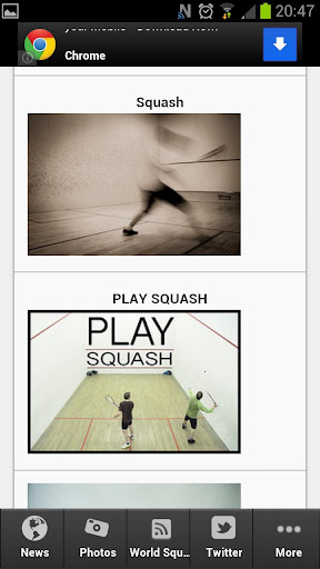 There's 2 photo albums, Facebook, Twitter feeds and video coaching plus some great videos of Professional Squash players.