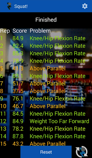 - Squat! counts and scores your reps, giving you a breakdown after every set.