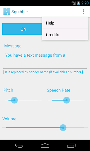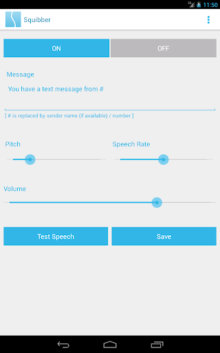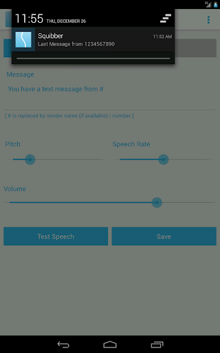 Just set the message you want Squibber to speak out when you receive an SMS and Squibber will be at your service.
