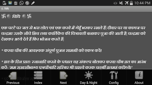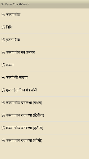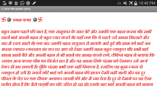 • Define Font size, Line space, screen light turning on/off when reading, Sri Karva Chauth Vrath basic information.