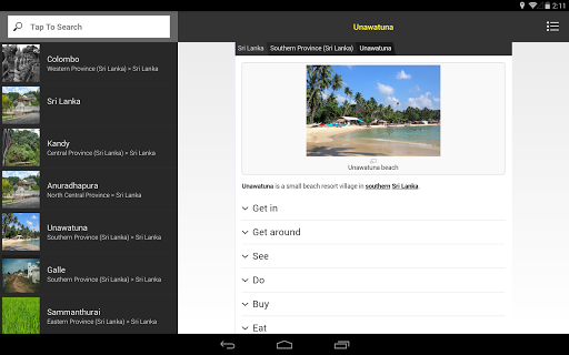 Sri Lanka GuideWithMe is an offline travel guide, which recommends detailed articles around the country in relation to your current location. Developed by travelers and for travelers, GuideWithMe is a rich source of general travel info as well as off the beaten track advice.