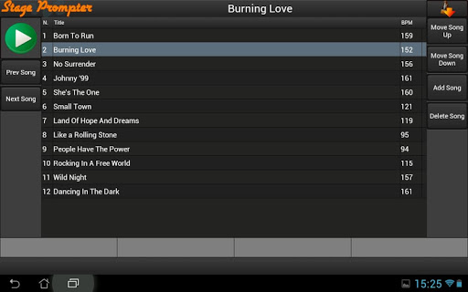 Con Stage Prompter è possibile definire una scaletta di canzoni (utile per i concerti).