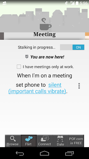 * Stalker controls your phone's ringer mode based on your context (at work, in a meeting, at home, or sleeping).
