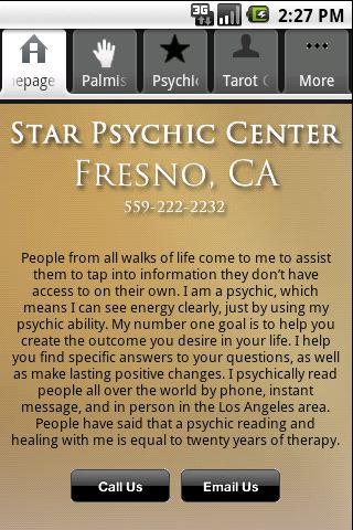 Star Psychic Center Android App connects you to a psychic with a one click connection.