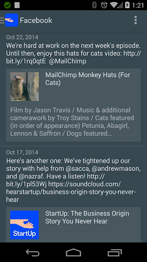Android app for a great podcast called StartUp created by Alex Blumberg to document the story of him starting up his own podcasting startup. This app aggreagates Twitter / Facebook / YouTube and of course the podcast.