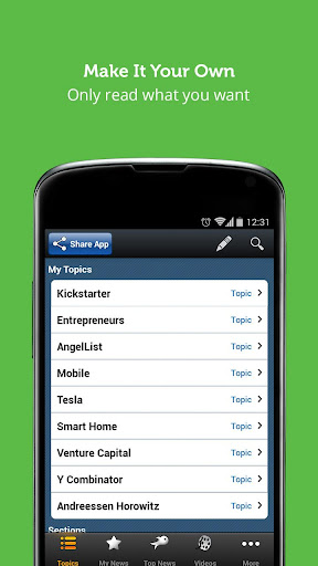 - Choose your favorite topics so you can easily stay on top of the things that matter to you. If there are specific topics you'd like to follow (like 'Deals', 'Venture Capital', 'Cloud Services' ) with one tap you'll get all the latest news customized for you.
