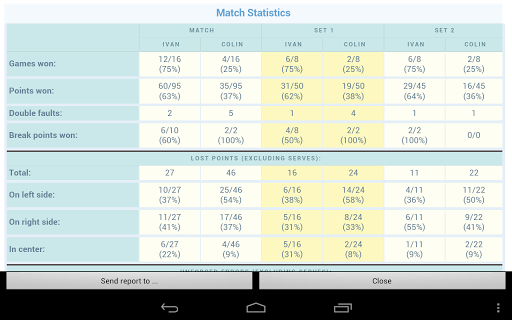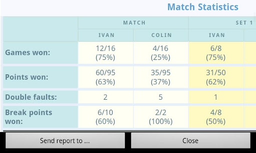 - generates detailed match report shots view and points chart (limited in Lite version).