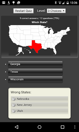 The wrongly guessed states are collected in a list with links to wikipedia for easy lookup.