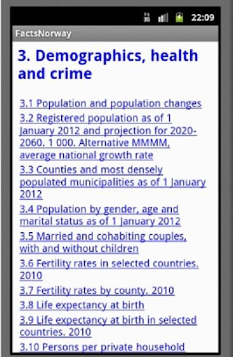 Statistical Facts for Norway displays facts about Norway in statistical diagrams and tables based on official statistics from Statistics Norway and other sources as available at the beginning of 2013. The facts comprise demographic, social and economic aspects. Links to the statistical sources for more details are provided. At the bottom of each source page displayed, a return link to the application is available.