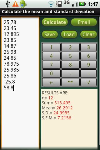1. Calculate the mean, standard deviation (SD) and standard error mean (SEM) from any number of numbers;
