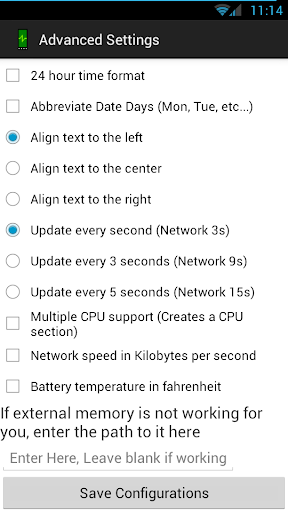 Through my testing, I've found this to be the fastest, most minimalistic, most customize able, and most beautiful form of android system monitor widgets, and I hope you agree. I also can confirm, along with many others, that this widget does not kill your battery, since it only makes requests while your screen is on, so this widget can save you from draining you precious battery life while you are monitoring it. If you have any suggestions or problems, feel free to e-mail me ( Aaron Turner ) at torch2424@hotmail.com, and rate this five stars if you enjoy it. Thank you!