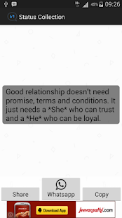 The best app and huge collection of statuses for all occasions for quick update status in all Social apps and website.