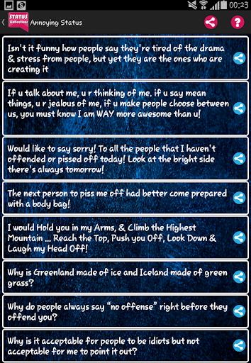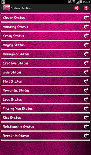 Enjoy the largest Status Message collections (Online/Offline) to share with your friends on any Social Networking Platform, SMS, email, Chats, etc.