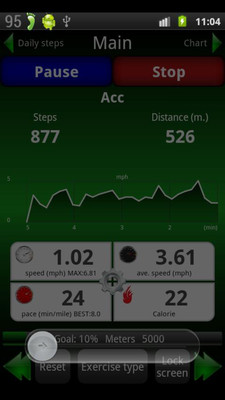 - Using the accelerometer program counts steps and, depending on the distance and weight count calories.