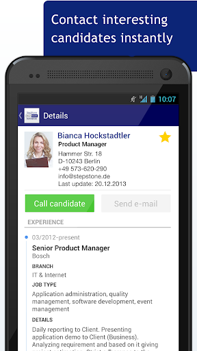 - Efficient: contacting candidates is super easy: a few clicks and you’re in contact.