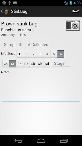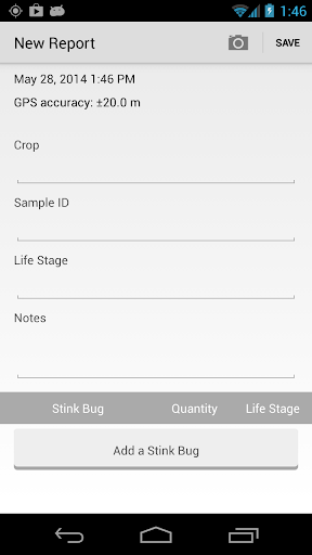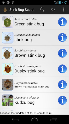 Stink Bug Scout is designed for use by university researchers for making assessments of stink bug populations in fields and across landscapes. At the point of collection, stink bugs are identified by the user, with assistance from pictures in the app database, and then entered into the database and uploaded to EDDMapS by multiple users simultaneously. All data points are stamped with the current time, date, latitude, and longitude and can be downloaded and sorted for further analyses. Stink Bug Scout was developed by the University of Georgia Center for Invasive Species and Ecosystem Health in cooperation with the Department of Entomology at the College of Agricultural and Environmental Sciences.