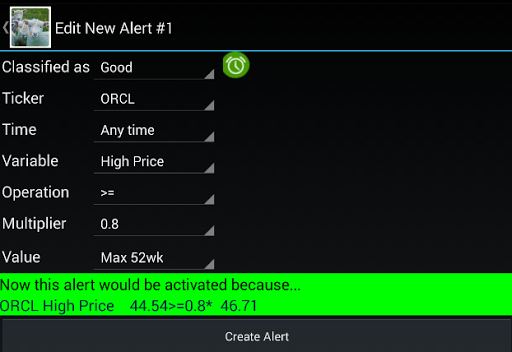 This App will let you watch out for your Stocks and be notified when an alert condition is activated.