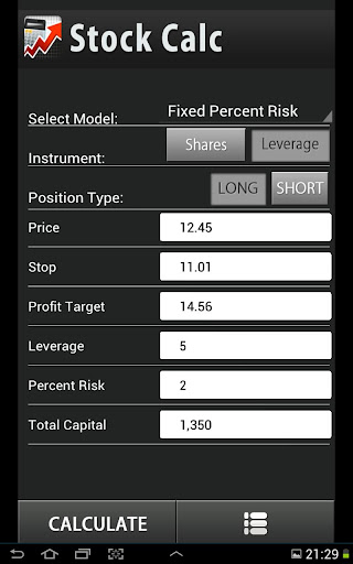 We also provide advanced calculation models to help you decide how many stocks you would purchase based on the amount of capital you are willing to risk.