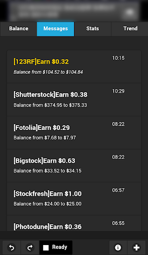 This is a mobile app to check your earningsat the microstock agencies automatically and notify you when you get new sales.The app crawls the agency and gets the image number and balance, it can also estimate your monthly earnings, daily earnings, RPI per month according to these data.