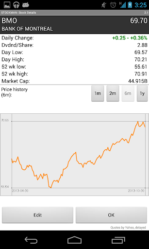 Stockman lets you track the performance of your stock market portfolio, as well as each individual position in it. Enter your stock symbols, the number of shares you own and the original purchase price, and the app will calculate your current gain (or loss) based on the up to date quotes provided by Yahoo Finance, for each stock symbol, as well as the grand total for your entire portfolio.
