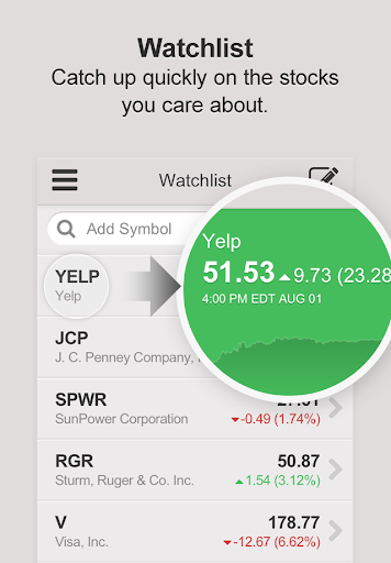 - CATCH UP QUICKLY: Build a watch list to catch up quickly on the stocks you care about.