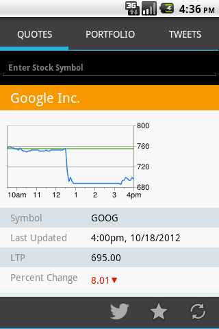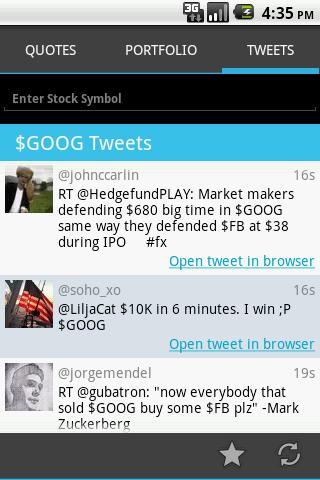 Stocks by Netsoft-USA is a dead-simple app to look up stock quotes, maintain a portfolio of watched stocks, and keep up with all the latest Twitter buzz regarding your stocks.