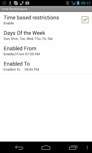 Administrators are able to set passwords so that a parent may install the app, and prevent their teen from altering the settings or disabling the app. Setting options allow for date and time restrictions in an attempt to save battery life. Emergency phone calls to 911 and whitelisted contacts are available at all times.