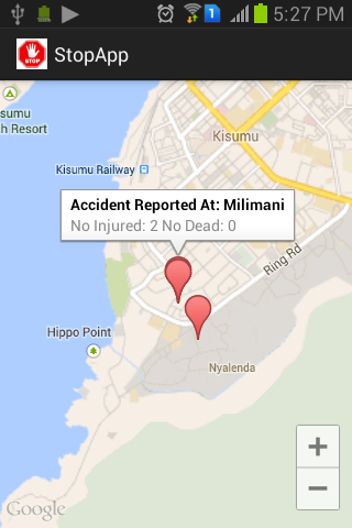 Use StopApp to Report accidents scenes as they occur on Roads. View graphical map on the distribution of accidents in the country, see black spots on the roads