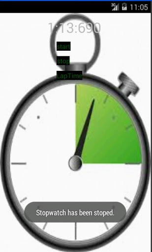 In this app there are three buttons in it. First, start button is for starting the stopwatch. Second button is stop, it will stop the stopwatch. And last button is laptime, it will shows us 5 laptime.