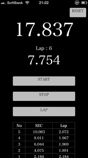 This simple application has a function of stopwatch and lap time.