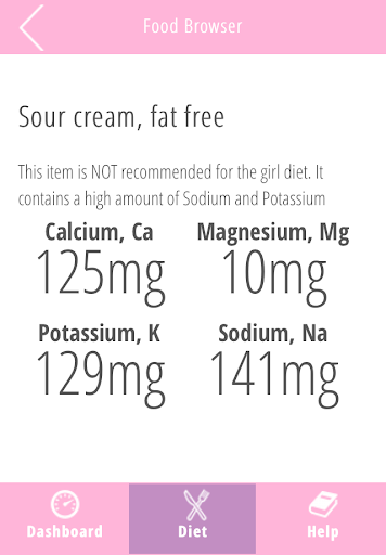 - Built-in database of over 8,400 food items to track what is allowed and prohibited on the girl diet