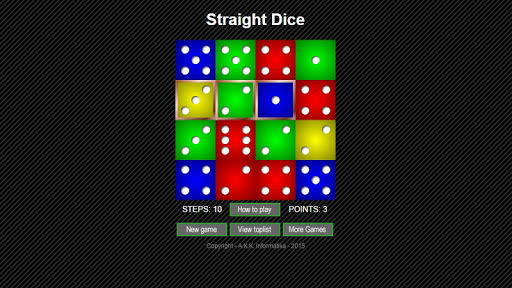 Click on any dice and all dice of that colour will increase by one. Extra step by getting vertical or horizontal straights of number of three or more.