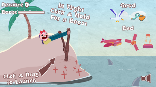 It takes guts to play Strandead, the new Happy Tree Friends HTML5 game! Help Giggles escape the island by using the slingshot to fire her into the air and across the sea. Bounce off birds to keep your momentum, but watch out for planes and satellites. Do you have what it takes?