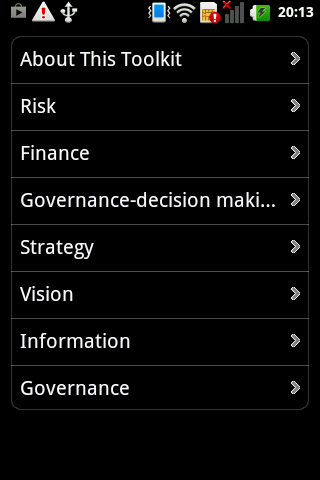 This app has been designed to provide Directors with insights, knowledge and key questions to ask in Board meetings. Use this app prior to each Board meeting to ensure you have the knowledge to enable you to ask key questions that will unlock strategic discussions at the Board meeting. Use this app during the Board meeting to remind you of the questions that must be asked. Use this app after the Board meeting to remind you of the follow up questions you should be asking, and put some of the conversations at the Board meeting into context.