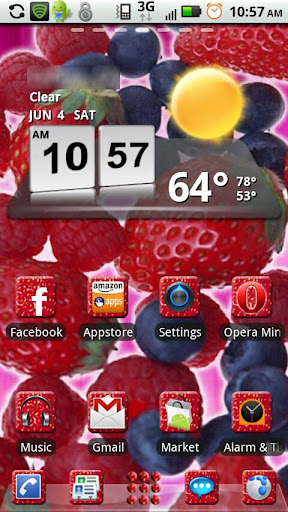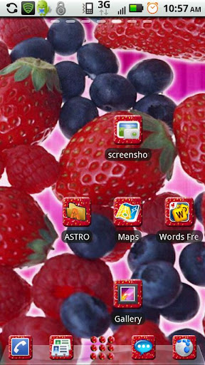 A cute Strawberry Theme for your Android device using "Go Launcher EX" home replacement app from the market!