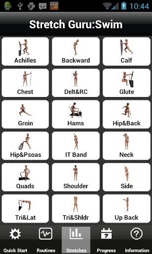 All stretches are Static Stretching techniques, which involve passively stretching a warm muscle to the point of mild discomfort and holding. Doctors recommend holding stretches anywhere from 10 to 60 seconds, so you can choose a Default Stretch Length in the My Settings section that works for you. You can also choose a Default Program so that when you open Stretch Guru, it will automatically launch your favorite set of stretches. You can also do this by hitting the Quick Start button. Voice prompts will guide you through your routine and if you prefer the vibrate mode, please mute your device.