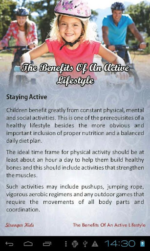 Besides inculcating good values toward foods and exercises, the strong kids who adopt such measurable platforms seem to function better and more efficiently in any area they venture into. Both psychologically and physically, these kids are able to take on much more that the average kid.