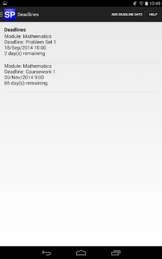 - Deadlines keep a list of deadlines with a countdown of days remaining, to keep on top of work.