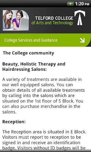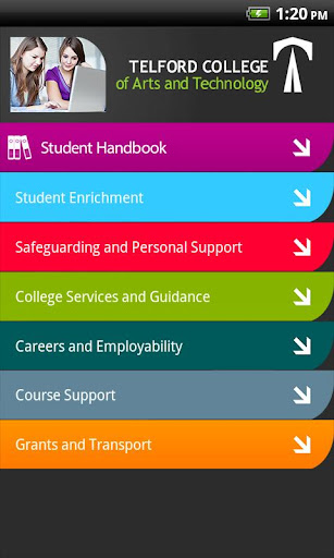 Telford College of Arts and Technology is proud to release its latest app, the StudentiGuide. The iGuide boasts an intuitive home screen menu that lets staff, students and visitors alike to keep up to date with news, social media posts, video & photography and course updates. There is also a dedicated section for an electronic version of our student handbook, split into different categories allowing you to find the information you need quickly. For new students and visitors to the college, we've also included an interactive map allowing you to navigate from your current location to the college.