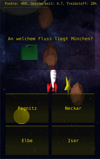 In den Weiten des Weltraums steuerst du eine Rakete, die Asteroiden ausweichen muss. Das Problem ist nur, dass die Rakete immer schneller wird und die Asteroiden näher kommen, als dir lieb ist. Aber keine Sorge, wenn du einen Asteroiden triffst: Beantworte eine Frage richtig und du hast keine Probleme. Fliege so lange wie möglich, sammele viele Münzen ein und beantworte natürlich alle Fragen richtig, damit dein Highscore in die Höhe schießt!