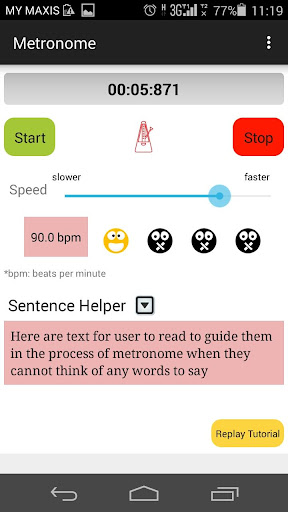 Stutter Manager is the advance version of Stutter Aid. It utilizes five techniques which are Metronome, Delay Auditory Feedback (DAF), Mirroring, Stutter Rate and Add Word Game to help in the process of overcoming stuttering/stammering. Stutter Manager allows users to manage their results from practicing from the mentioned techniques and share it with their pathologist or doctors. On top of that, the pathologist/doctor can also provide feedback to the results patient sent to them through 'commenting' on those feedback.This creates a two way feedback from the doctor/pathologist side and patient side, reducing the number of times needed to travel to see the pathologist/doctor in person.