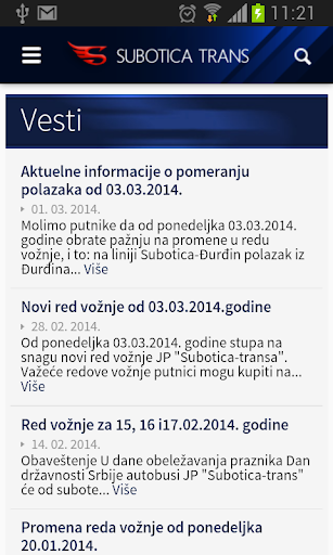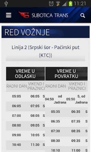 Aplikacija "SuTrans - Red vožnje" nudi informacije red vožnje gradskog, prigradskog, međugradskog i međunarodnog autobuskog saobraćaja javnog preduzeća "Subotica-trans" (http://sutrans.rs).