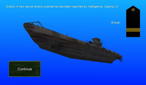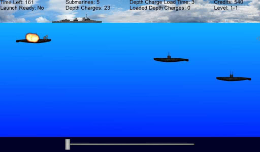 This is an arcade style submarine game. The object of the game is to destroy all the submarines on each level to advance to the next level. Destroy the submarines by dropping Depth Charges from the back of your Ship. Depth Charges must explode next to the Submarine to damage it. Depth Charges explode at the level in which you touch the screen.