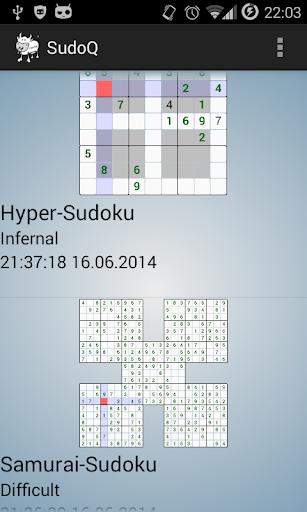 Who says sudoku must have 81 fields? Our app offers many different kinds of sudokus. Bored by 9x9 sudokus? Try 16x16, 6x6, samurai sudokus or many more!