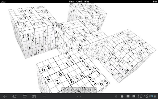 Sudocube is a new 3D version of the classic number puzzle Sudoku. It includes a 3D cube, a larger 3D stepped terrace arrangement and a huge 3D quintuple cube arrangement as well as all the classic 2D arrangements. We're also working on a world-wide high score tracking system. Happy puzzling!