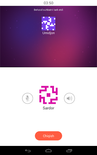 Suhbatning anonimligi ta’minlanishi uchun, ikkita odam qayta uchrashish ehtimoli kamayib boradi (agar suhbatdoshingiz suhbatni tark etsa, shu suhbatning o‘ziga qayta qo‘shilolmaydi).*