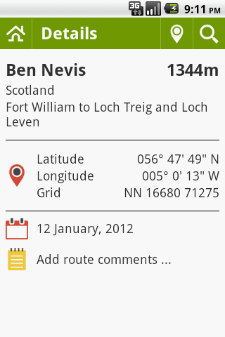 ✓ view additional information about each summit including height, region, latitude and longitude, and OS grid reference